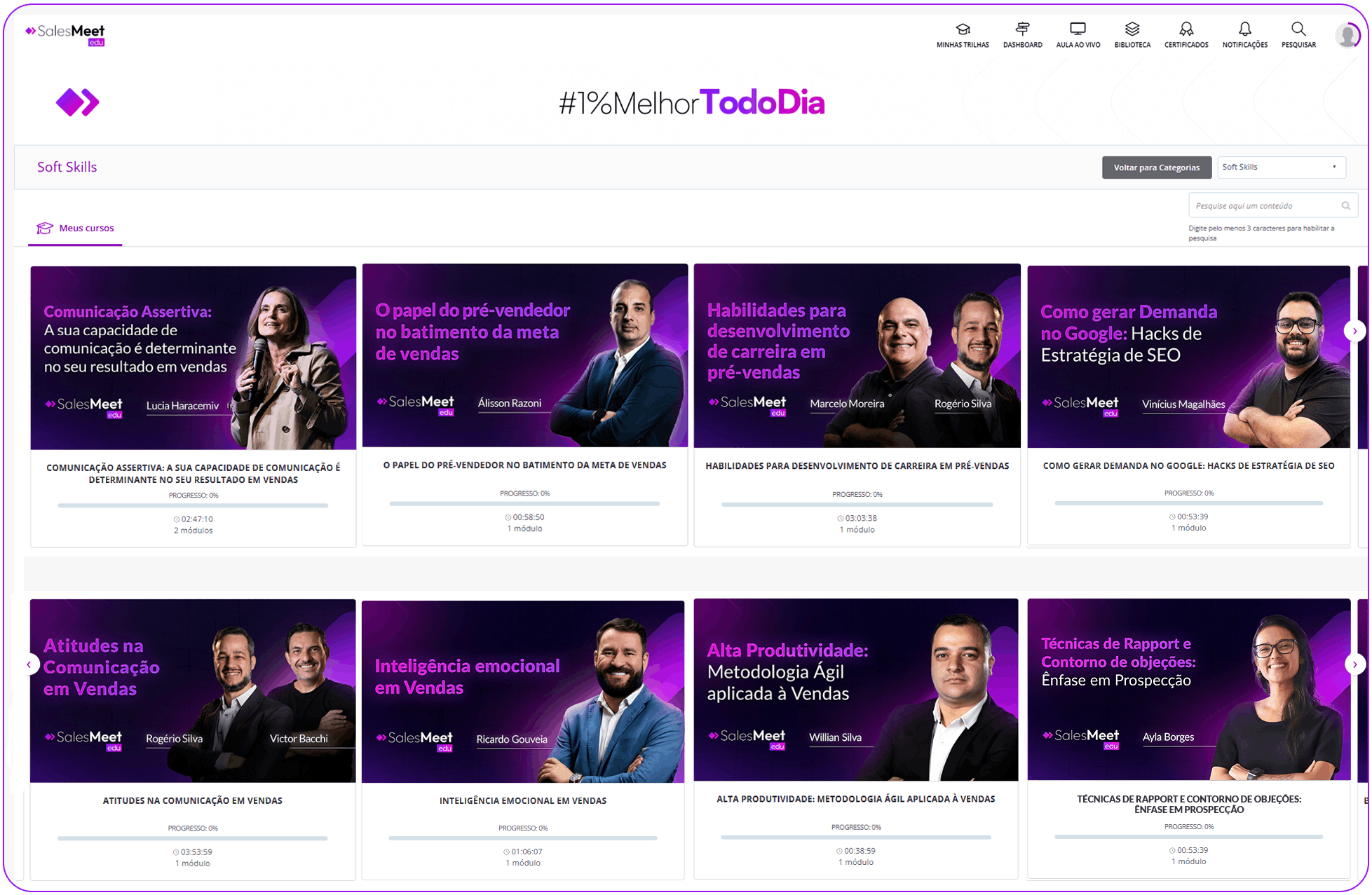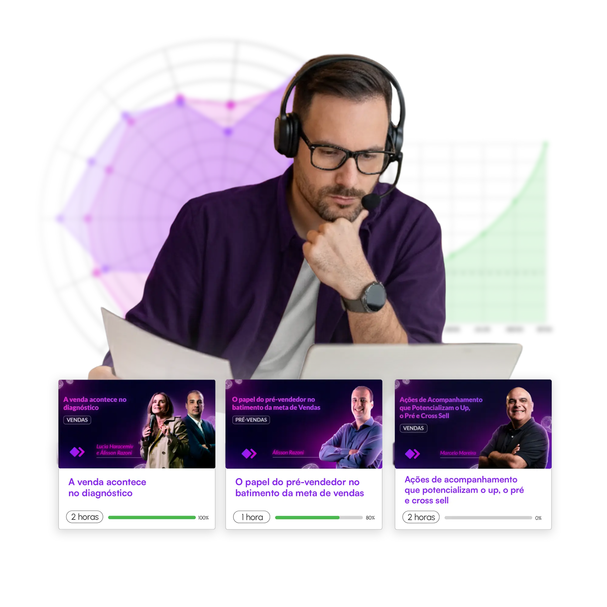 Acesse conteúdo técnico aprofundado, com cursos e trilhas personalizadas, para desenvolver habilidades e acelerar o sucesso comercial da sua equipe de vendas.