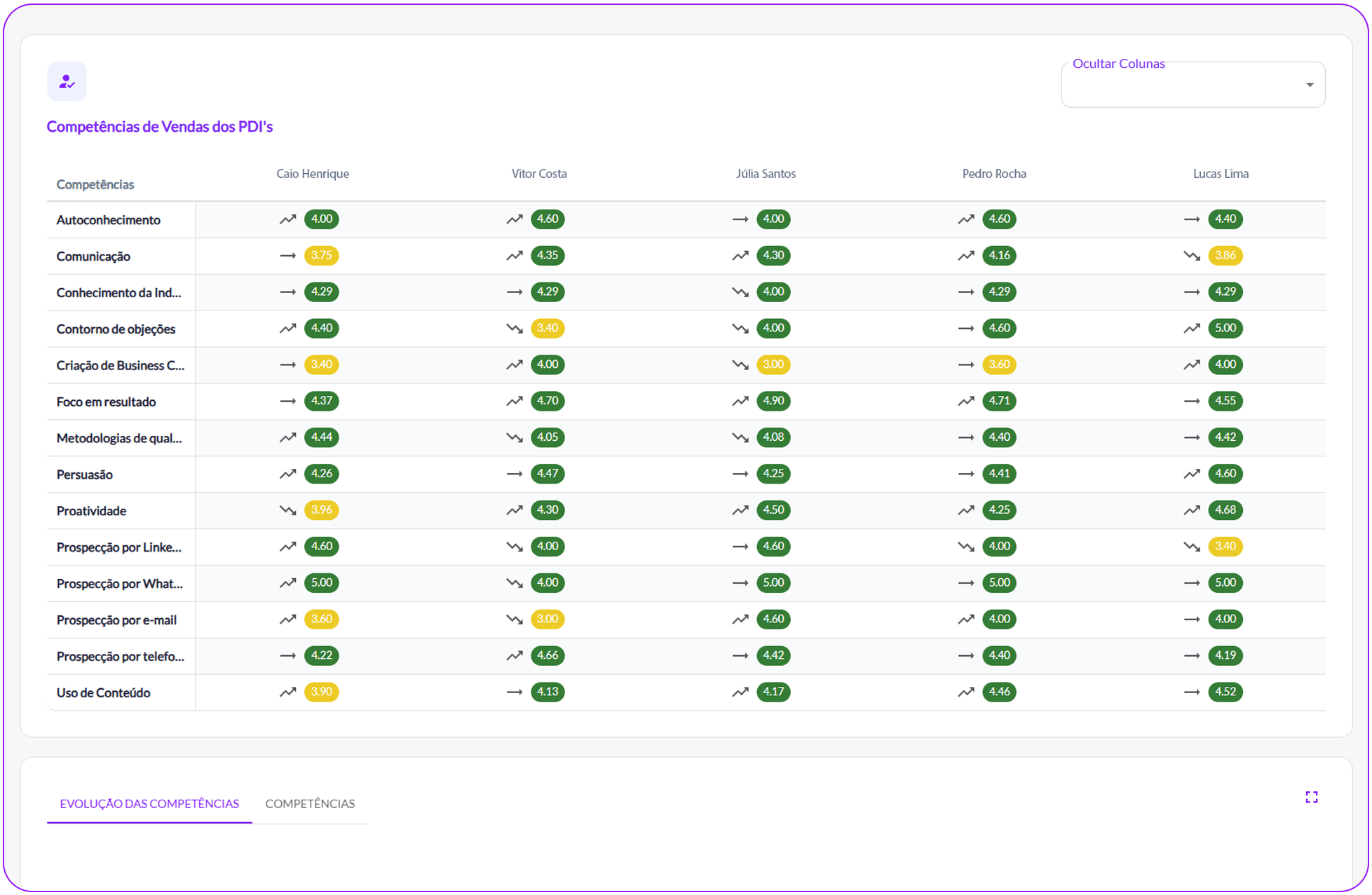 Mapeie as competências e correlacione com os indicadores da equipe para direcionar ações de capacitação específicas.