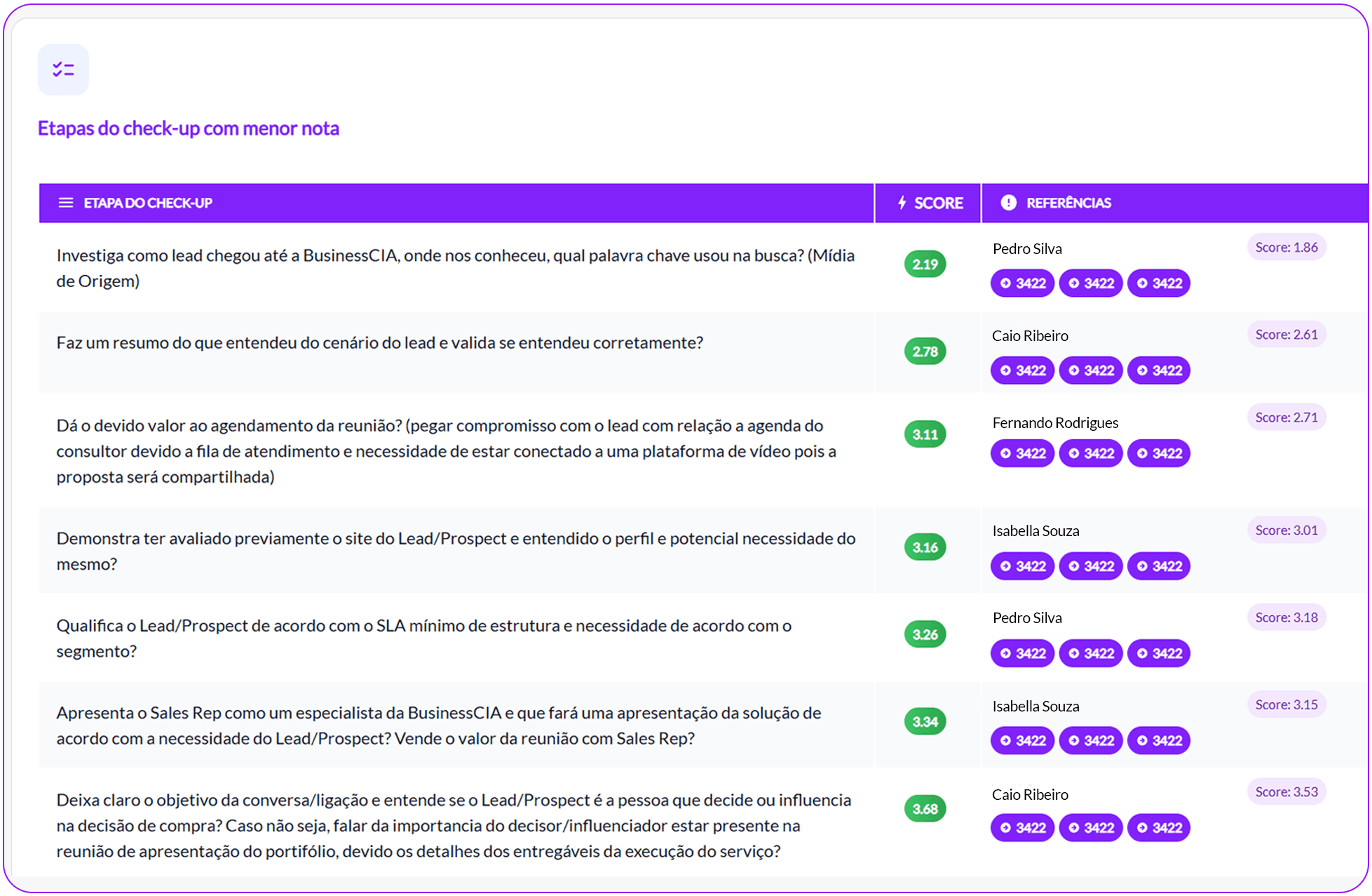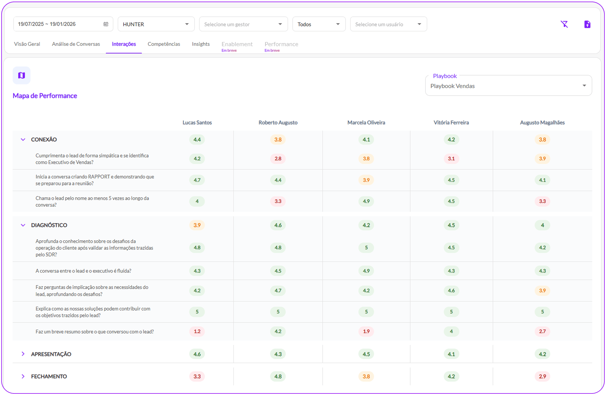 Análise das interações de vendas feita pela consultoria que criou os playbooks das maiores empresas do Brasil