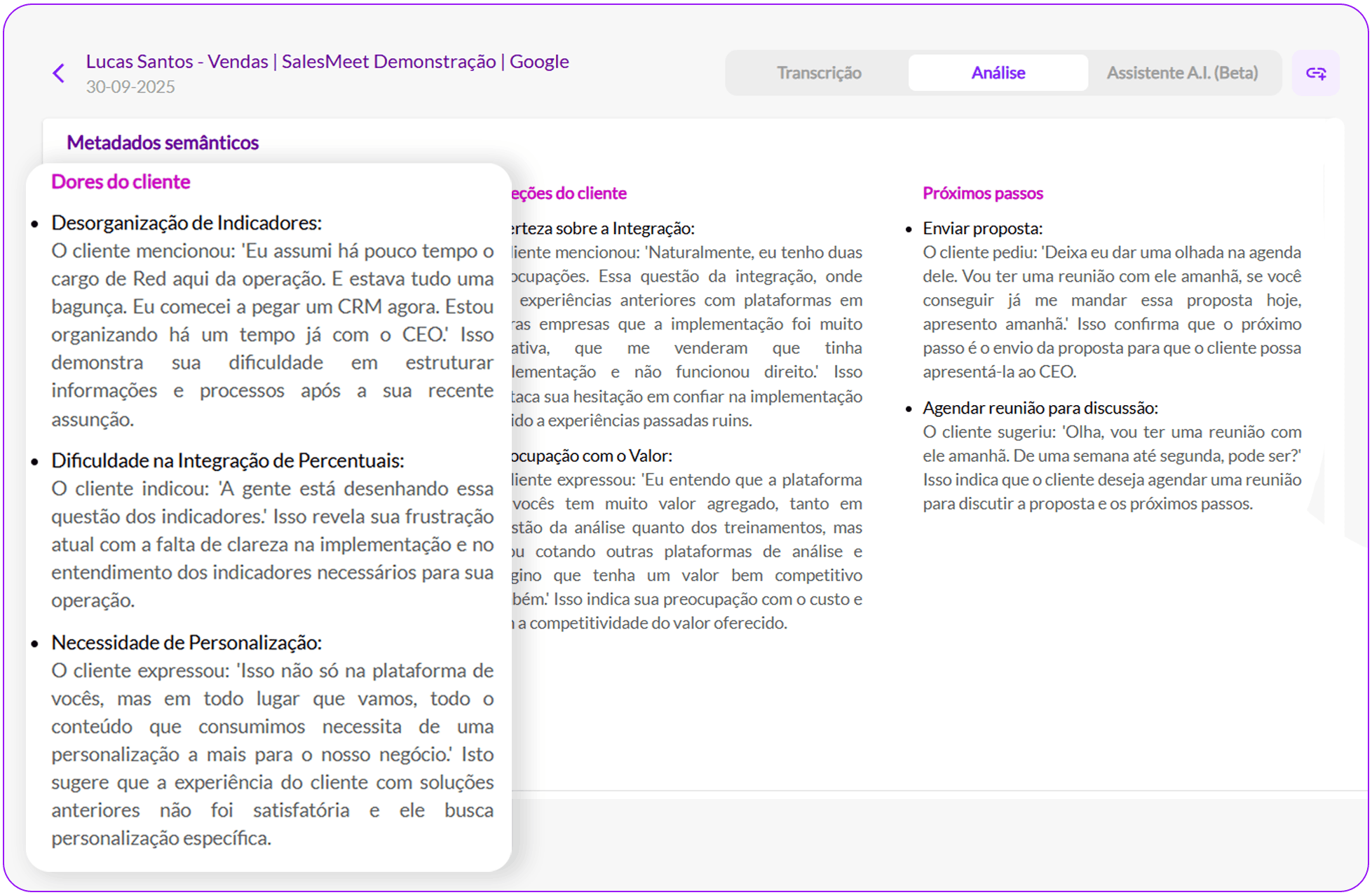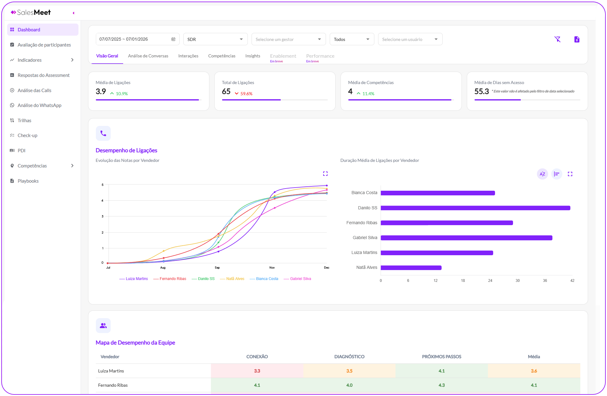A SalesMeet conecta análise + dados + educação em uma única experiência.
